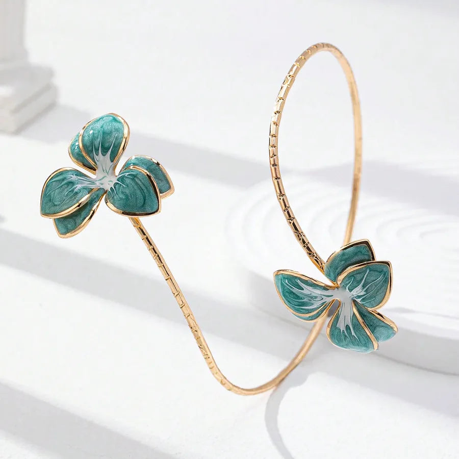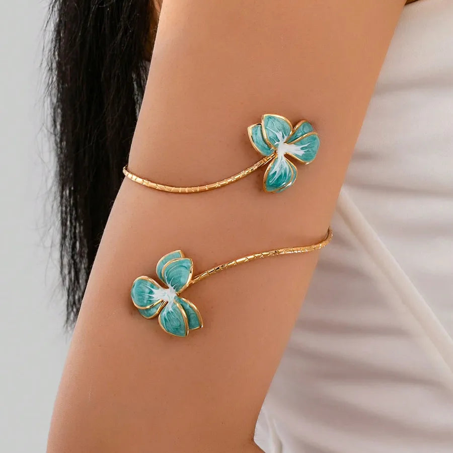 Daiwei Jewelry Summer Beach Style Multi-layer Open Hand Bracelet Oil Drop Flower Design Metal Arm Ring Fashion Accessory